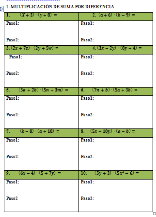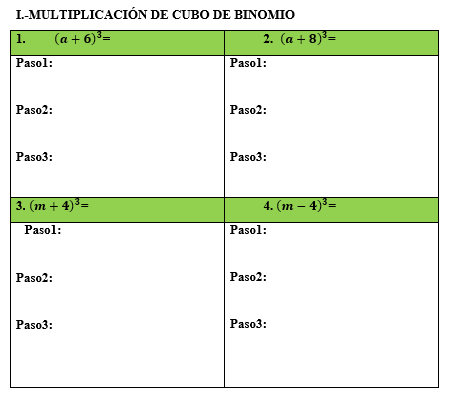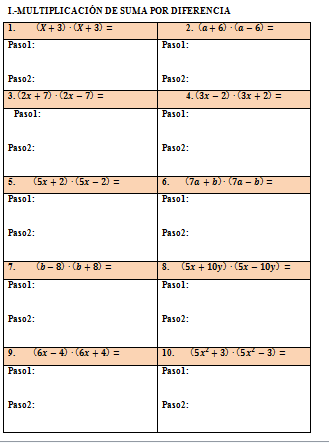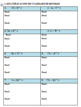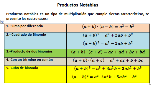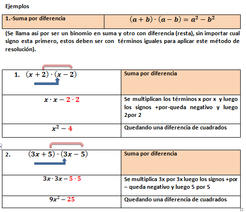 MULTIPLICACIÓN EN PRODUCTOS DE SUMAS EN LOS TRES PRODUCTOS NOTABLES