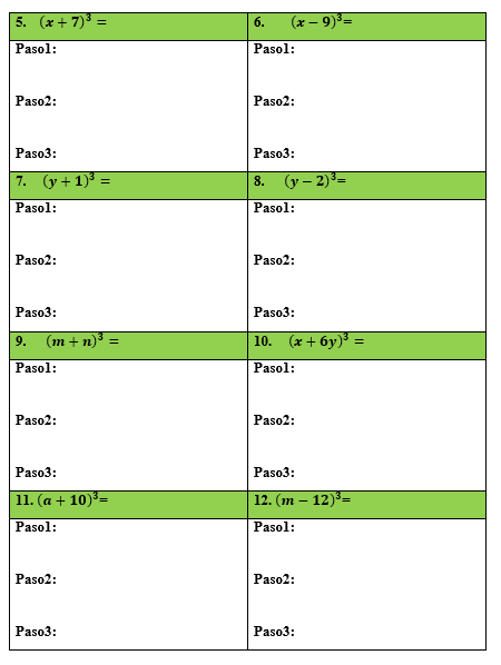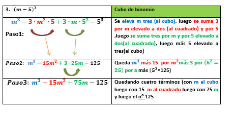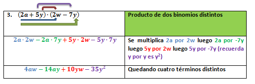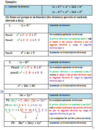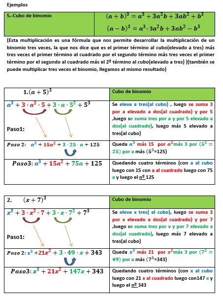 Binomio: 2 términos algebraicos (separados por sumas o restas)