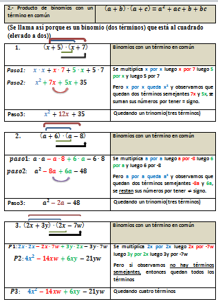 -Transformando productos en sumas, y viceversa. -Aplicándolos a situaciones concretas. -Completando el cuadrado del binomio. -Utilizándolas en la reducción y desarrollo de expresiones algebraicas.